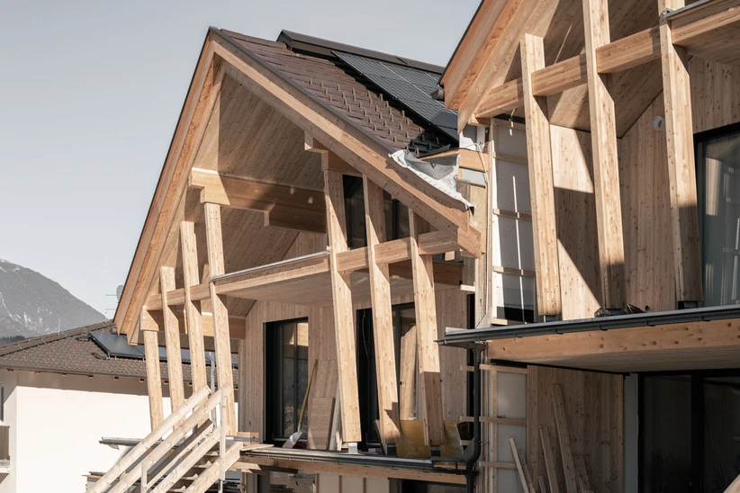 Reihen- und DoppelhäuserAusgeführte LeistungenFachplanung HolzbauBauweiseHolzrahmenbauweiseFertigstellung In Ausführung, Fertigstellung 2026Fotos © Johannes Oberhollenzer