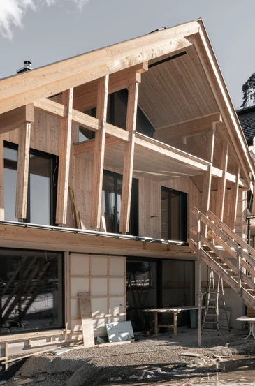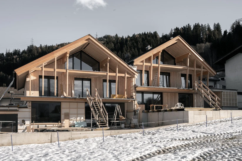 Reihen- und DoppelhäuserAusgeführte LeistungenFachplanung HolzbauBauweiseHolzrahmenbauweiseFertigstellung In Ausführung, Fertigstellung 2026Fotos © Johannes Oberhollenzer